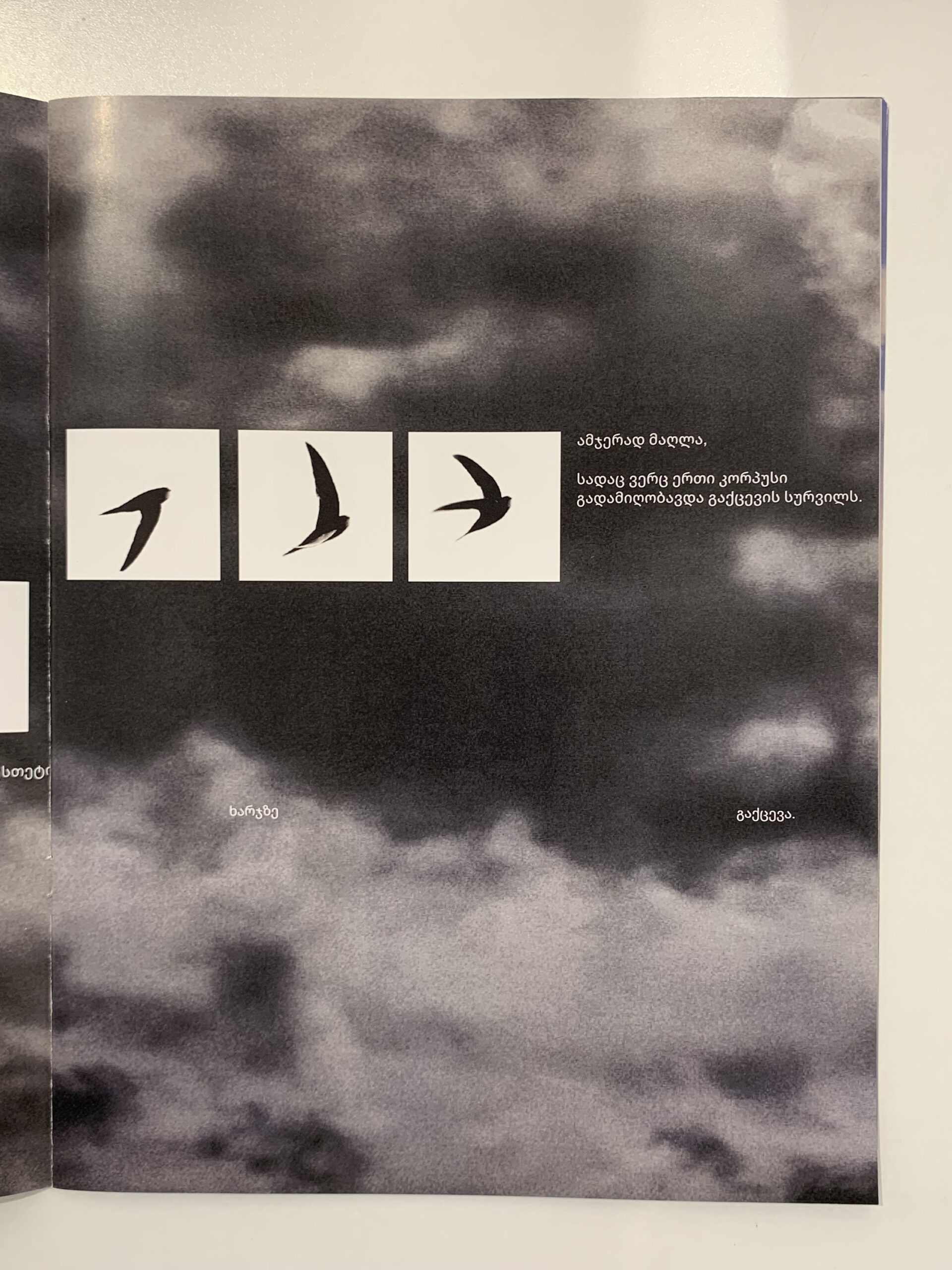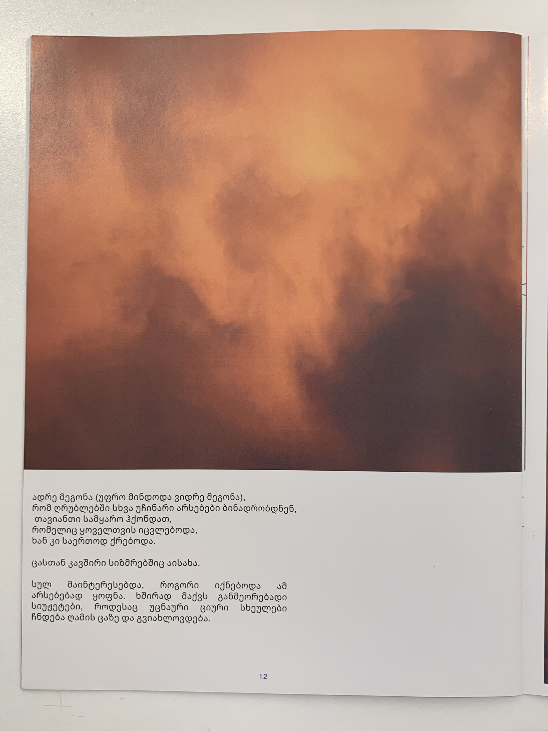 ნინო აქუბარდიასთვის ღრუბლები ერთგვარი „გაქცევაა“ ქალაქის დამთრგუნველი გარემოდან. ისინი, ერთფეროვანი კორპუსებისგან განსხვავებით, მუდამ იცვლიან ფორმასა და ფერს.