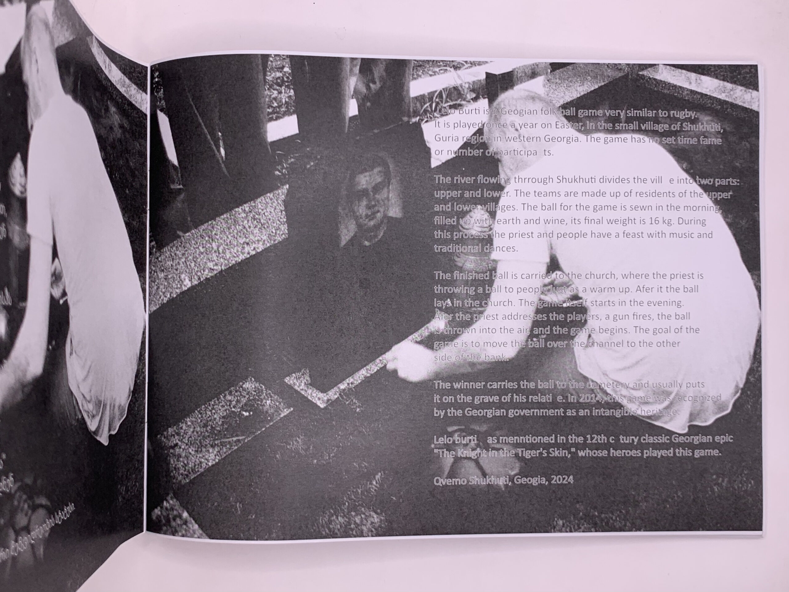 Photographer David Grigoryan documents Lelo Burti, the ancient and powerful traditional Georgian Easter game, in this striking zine. Played for centuries in the village of Shukhuti, Lelo Burti is often described as a mix between rugby and ritual, where two teams battle to carry a heavy leather ball to the opposing side’s riverbank.