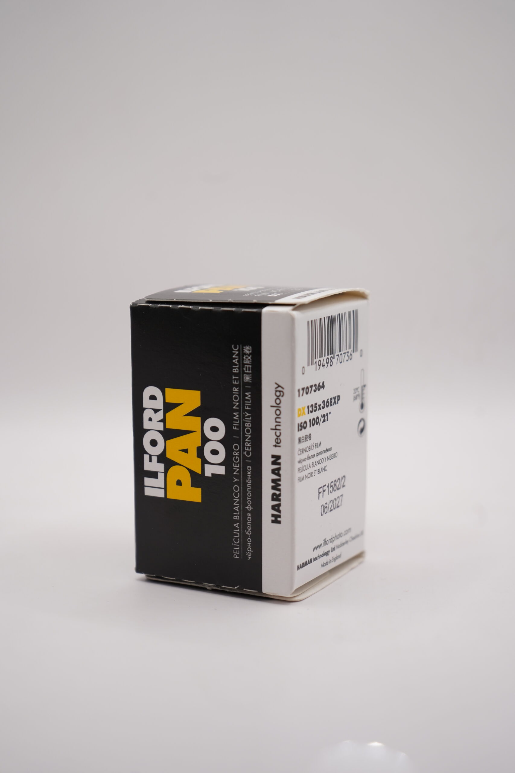 ILFORD PAN 100 is a high-quality ISO 100 35mm black and white film known for its fine grain, excellent sharpness, and smooth tonal range. It’s an ideal choice for portraits, landscapes, and studio photography, delivering clean and detailed results in bright lighting conditions.